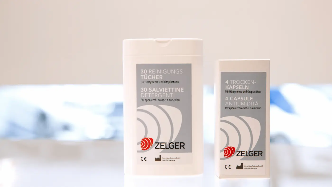 Nei Zelger Center trovi tutto il necessario per prenderti cura dei tuoi apparecchi acustici anche a casa, in modo semplice e veloce. Dai bicchierini deumidificanti alle pastiglie antiumidità, dalle salviette igienizzanti agli spray specifici – ogni prodotto è pensato per aiutarti a mantenere puliti ed efficienti i tuoi dispositivi, giorno dopo giorno.