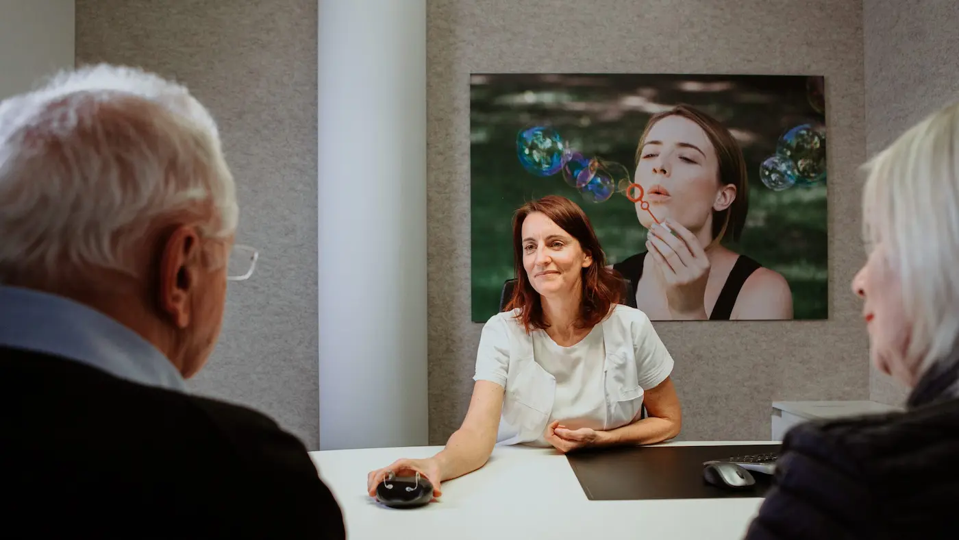 I nostri esperti dell’udito selezioneranno la migliore soluzione uditiva in base alle tue esigenze. Puoi portare i tuoi apparecchi acustici a casa e testarli in tutte le situazioni quotidiane. Già dal primo giorno, gli apparecchi acustici miglioreranno la tua capacità uditiva. Inizialmente potresti sentire alcuni suoni – come anche la tua stessa voce – che possono sembrarti piuttosto forti e persino strani. Probabilmente sentirai voci e suoni che non sentivi più da molto tempo come il fruscio dell’acqua o il canto degli uccelli. Per poterti incoraggiare in questo nuovo cammino, ti accompagneremo passo dopo passo con dei controlli